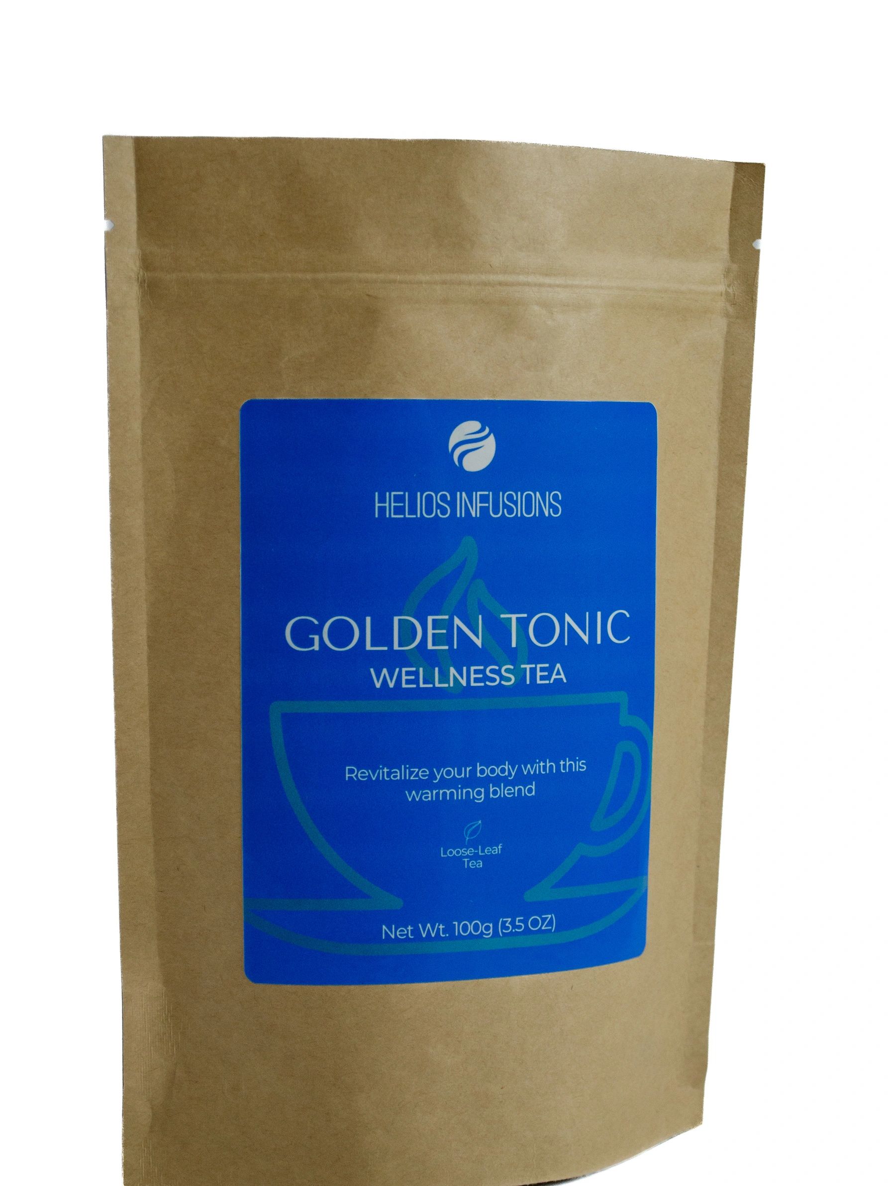 Golden Milk Latte: Bring 10oz milk to a boil, add 1-2 tsp of Golden Tonic, reduce heat and simmer 5-10min. Add sweetener.
